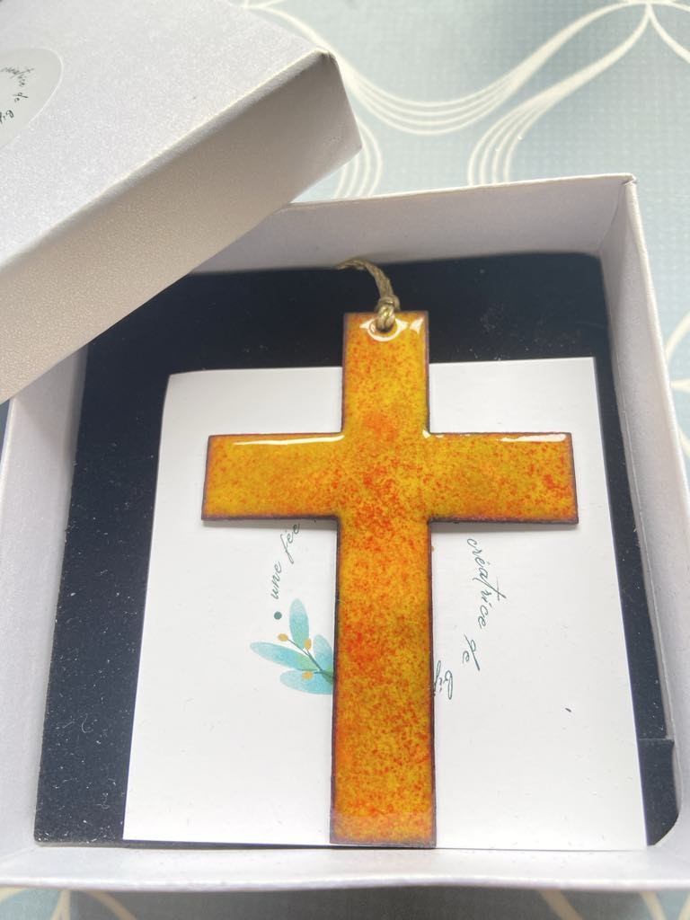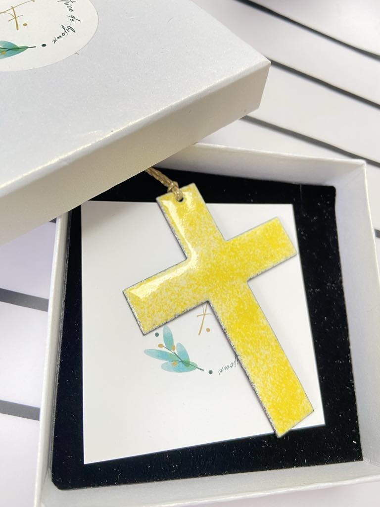 Jolie croix en cuivre émaillée à la main dans mon atelier, chaque pièce est unique et personnalisable.