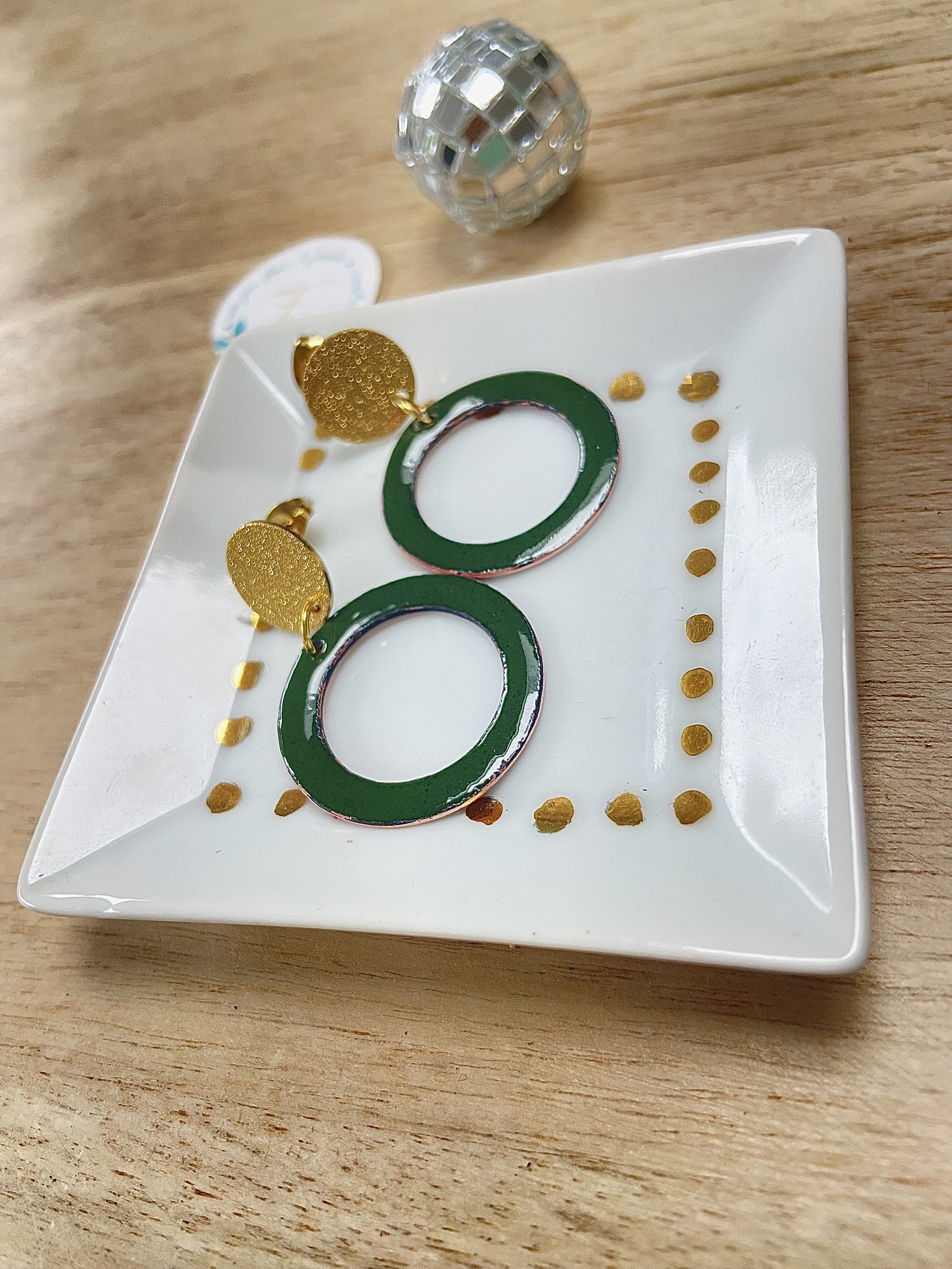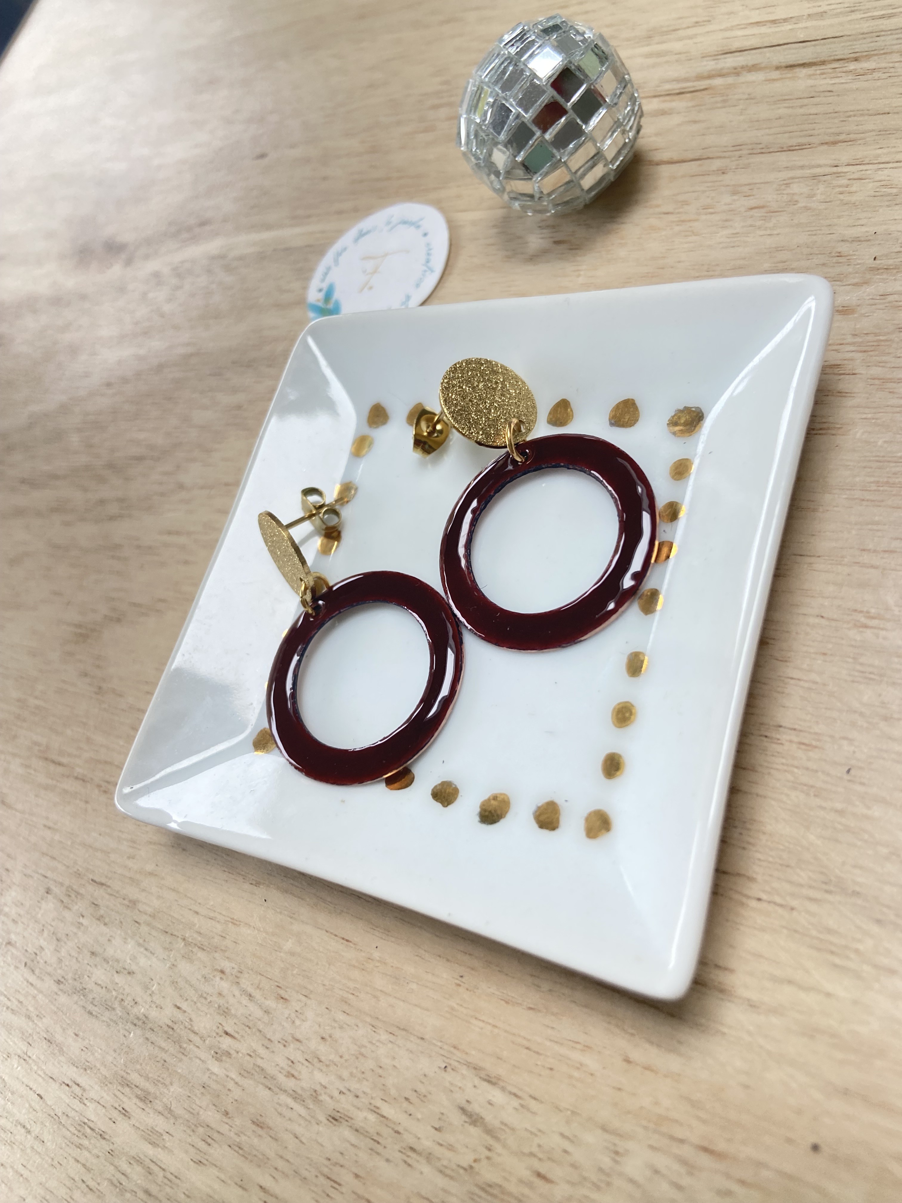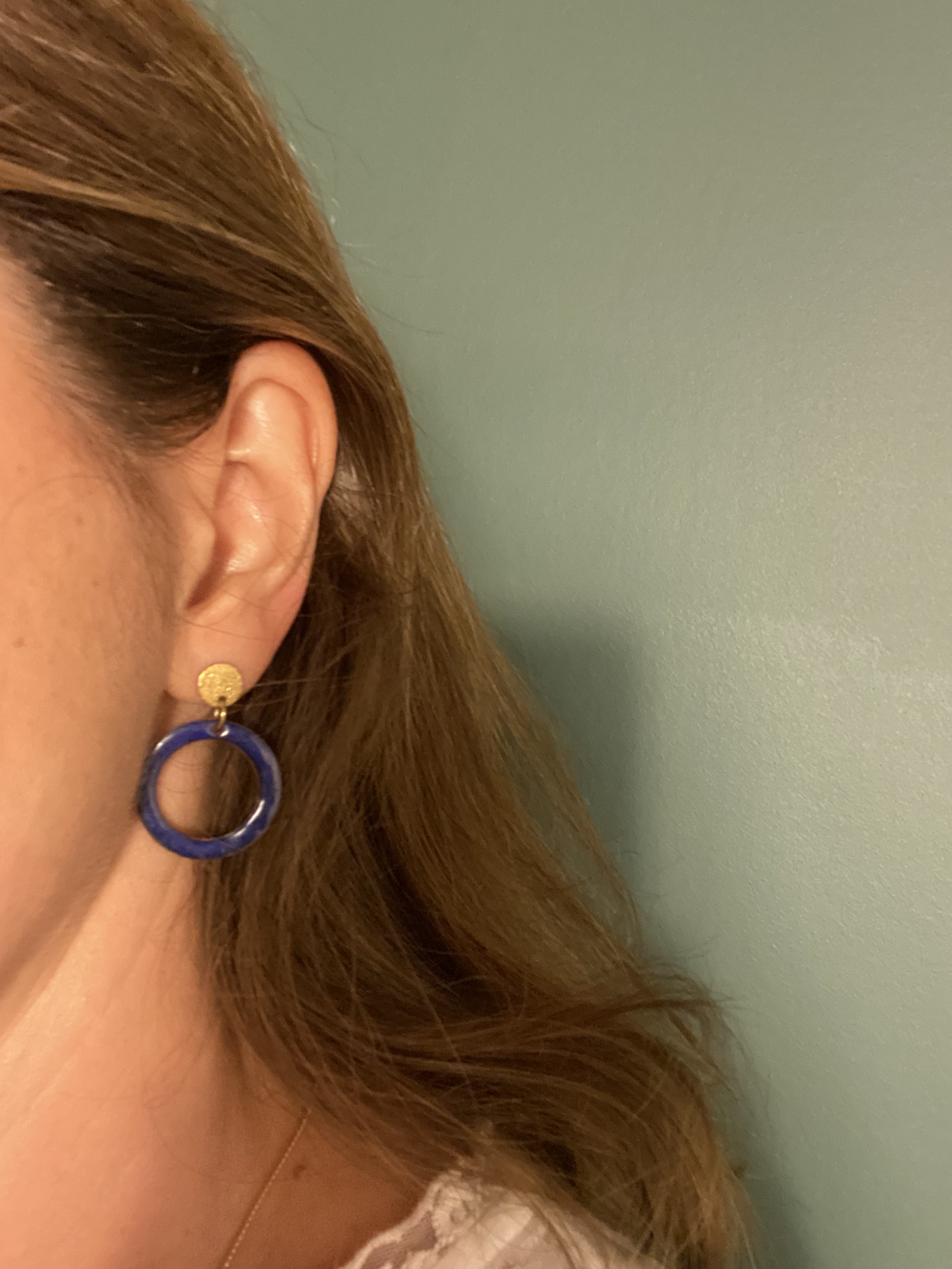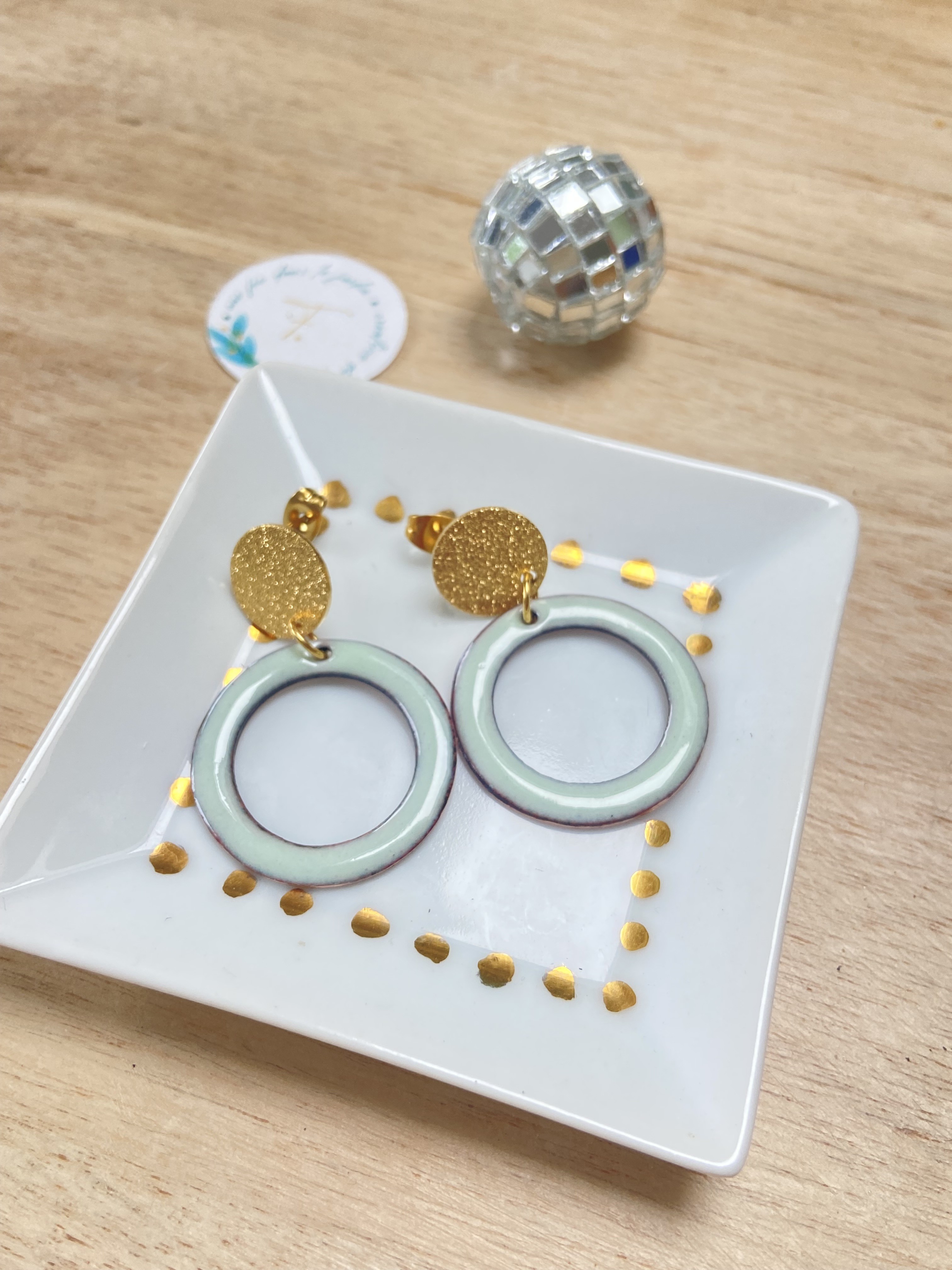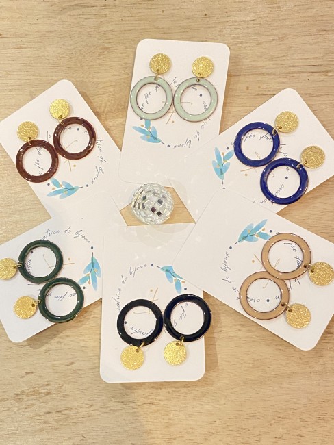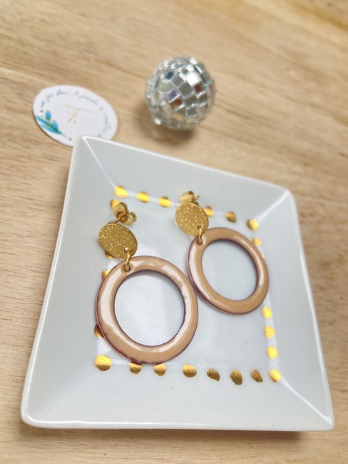 Les boucles d oreilles se fixent par des puces rondes en acier inoxydable doré pailleté hypoallergénique.