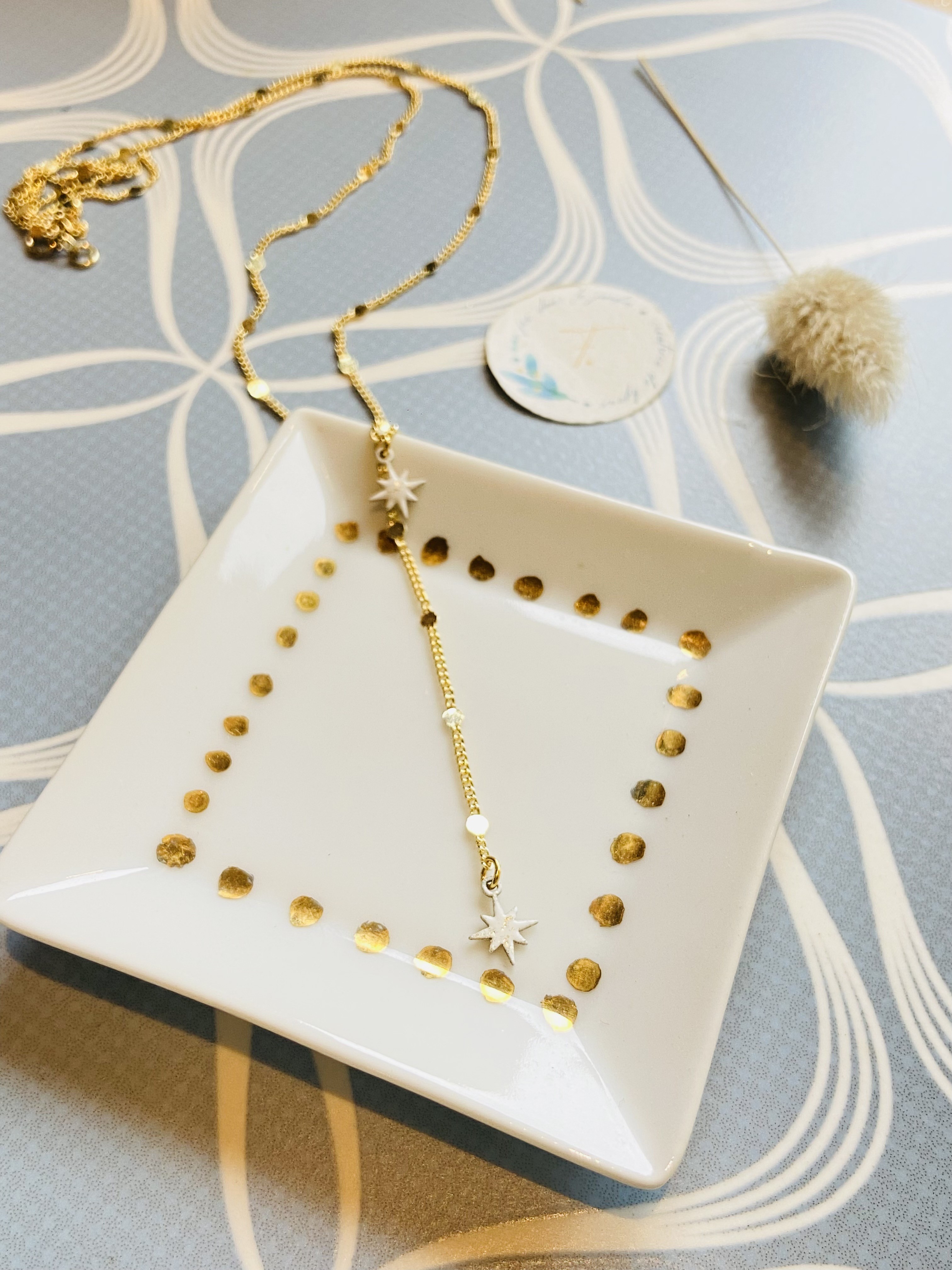 Le collier STELLAIRE sublimera votre décollété ou votre dos en apportant une note de lumière et d'élegance.